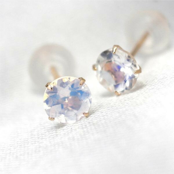 K10イエローゴールド製 ブルームーンストーン シンプル スタッド ピアス 4mm 定番4 本爪 両耳用 6月 誕生石 K10YG レディース メンズ 誕生日プレゼント ギフト