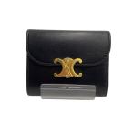 CELINE◆3つ折り財布/レザー/BLK/レディース