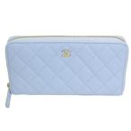 CHANEL シャネル ロング ジップ ウォレット AP0242 グレインド カーフスキン クリアブルー マトラッセ キャビアスキン レディース長財布