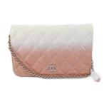 【天白】シャネル チェーンウォレット ショルダーバッグ ココマーク ピンクグラデーション 長財布 レザー レディース