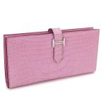 エルメス 長財布 レディース ロング ウォレット ベアンスフレ 二つ折り財布 クロコダイル ワニ革 レザー ピンク HERMES BEARN SOUFFLET CROCO