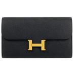 エルメス HERMES コンスタンス ロング トゥーゴー長財布 二つ折り 札入れ カード入れ 長財布 ヴォーエプソン ブラック K レディース 中古
