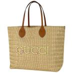 グッチ GUCCI ロゴ トートバッグ かごバッグ ストロー ラフィア トートバッグ レザー ベージュ ブラウン 779666 レディース 中古