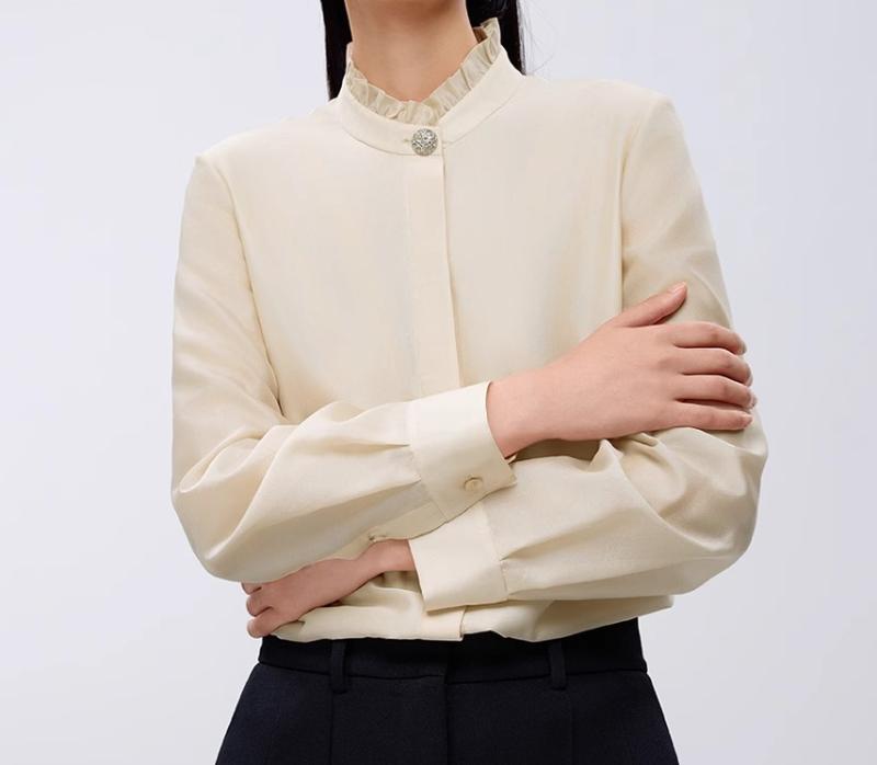 スタンドカラー シャツ レディース 長袖 春 レース ポリエステル 前開き ボタン ブラウス オフィス シンプル 上品 おしゃれ 通勤 お出かけ スーツインナー 大きいサイズ ベージュ