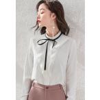 リボンタイ付き 長袖 ブラウス レディースシャツ ホワイト フリル ブラウス スーツ インナー 卒業式 卒園式 就活 女性 通勤 大きいサイズ