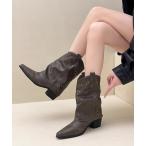 ブーツ ポインテッドトゥ ミドル丈 ウエスタンブーツ レディース
