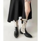 ブーツ 刺繍デザイン 入りウエスタンブーツ レディース