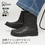 【Outlet25%OFF】 本革 ウエスタン ブーツ レディース ショートブーツ ミドルブーツ 革 レザー シボ革 幅広 外反母趾 Diu ディウ 324D4620