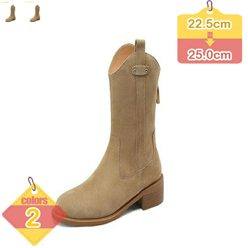 ブーツ レディース ウエスタンブーツ 秋冬 ミドル丈 太ヒール 6cmヒール アーモンドトゥ スエード調 かわいい おしゃれ お出かけ デート かっこいい くしゅくしゅ 旅行 履きやすい 歩きやすい 疲れにくい きれいめ 高見え 脚長効果 RaogtCYU