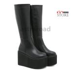 厚底ブーツ レディース 秋 ウエスタンブーツ ウェッジソール レースアップ 長靴 美脚 疲れにくい 歩きやすい ブラック