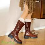 本革 厚底 ロングブーツ レディース 美脚 バックル 履きやすい ローヒール ロング ブーツ 疲れにくい カジュアル シンプル 歩きやすい 痛くない 大きいサイズ