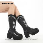 ウエスタンブーツ 秋冬靴 ロングブーツ レディース カウボーイ 可愛い 膝下 美脚 保温 パーティー 疲れにくい 落ちにくい 履き口ゆったり サイドジッパー