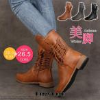 レディース ブーツ ミドル丈 ブーツ ワークブーツ 靴 レディースブーツ ミリタリーブーツ マウンテンブーツ 太ヒール レースアップ 裏起毛 サイドジップ