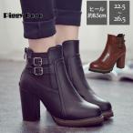 ショートブーツ レディース サイドジップ エンジニアブーツ ブーティー 太ヒール 8.5cm チャンキーヒール ハイヒール リベット ベルト付き