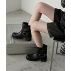 ショートブーツ エンジニア バックル ブラック ブラウン レディースカジュアル / ステッチデザインエンジニアショートブーツ