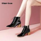 ポインテッドトゥ ショートブーツ レースアップブーツ 編み上げブーツ ブーツ レディース エンジニアブーツ ヒールブーツ 黒 ハイヒール レディース靴