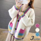 先着100名様【店内全品50%OFFクーポン】2/4 20時~■モヘアライクVネックシャギーニットカーディガン トップス レディース カーディガン 羽織り 厚手 ボタン 長袖 ニット 防寒