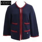 CHANEL シャネル P53646K06989 カシミヤ100% フロントホック カーディガン 34 ネイビーxレッド レディース