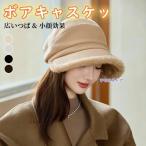 キャスケット レディース ハット 小顔効果 秋冬 裏起毛 帽子 つば付き 美シルエット つば広 ボア帽子 レディース帽子 uvカット帽子 日除け帽子 つば広ハット