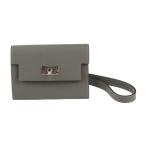 HERMES◆ケリーポケットスリム/W刻印/コインケース/レザー/GRY/レディース