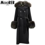ムーレー コート レディース カシミヤ混ウール ベルテッドロングコート MOORER MALAIKA-FUR-LE MRE 81135 NERO