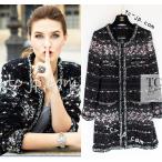 シャネル コート CHANEL 95万 ブラック マルチカラー ルサージュ ツイード ランウェイ登場 貴重なカールラガーフェルド 超美品 予備布付 36