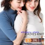 ハイネック Tシャツ レディース ゴルフウェア 薄手 無地 5分袖 半袖ニット サマーニット サマーセーター インナー オフィス