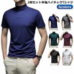 tシャツ 2枚セット ハイネック メンズ 春夏 ビジネス 半袖 レディース ゴルフウェア インナー カットソー モックネック メンズ ハイネックtシャ