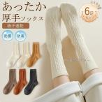 靴下 レディース ソックス 6足セット ゆったり クルー丈 無地 リブ編み クルーソックス くつした 暖かい 厚手 冷房対策 保温 おしゃれ 秋冬
