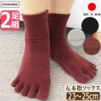靴下 日本製 5本指 五本指 ソックス レディース ロークルー丈 2足 セット 表糸綿100% 口ゴムゆったり 無地 23〜25cm set1421 nicomako ニコマコ