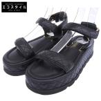 美品 CHANEL シャネル サンダル ココマーク レディース ヒール ファブリック レザー ブラック G39892 361/2