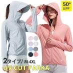 UV パーカー 冷感 -7℃ レディース 長袖 ラッシュガード 遮光 つば UVカット アウター 2タイプ 通気口 指穴 取り外し サンバイザー 日焼け防止服 大きいサイズ