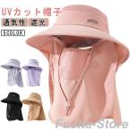 帽子 レディース UVカットハット つば広帽子 紫外線対策用ハット フェイスカバー付 取外し可 サンバイザー ハット 畑仕事 遮光 通気性 ネックカバ