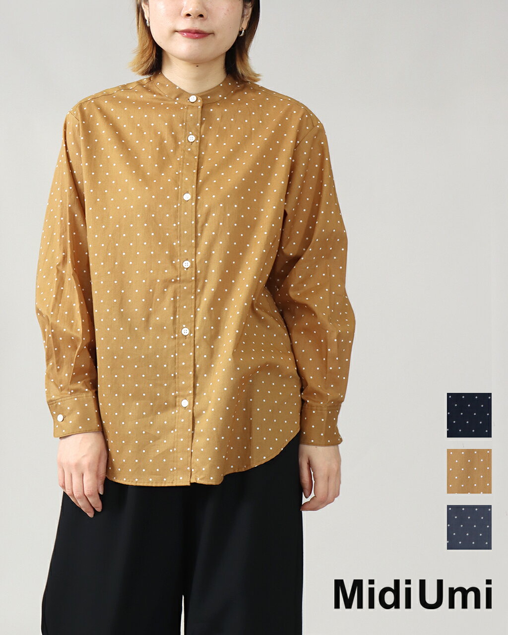 【2点15%OFF 3点20%OFFクーポン対象】【15%off ウィンターセール】MidiUmi ミディウミ ドット バンドカラーシャツ 3-739923 ドット シャツ 長袖 レディース ドット柄 トップス ブラウス レディース 正規品 25AW AWCO