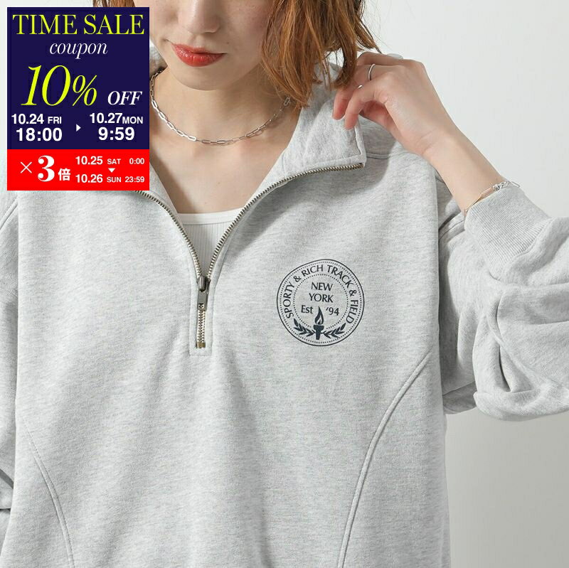 【10/27-9:59迄10%OFFクーポン対象】SPORTY&RICH スポーティアンドリッチ トレーナー QZAW2310 レディース スウェット 裏起毛 ハーフジップ ロゴ HEATHER-GRAY【cp_ten】