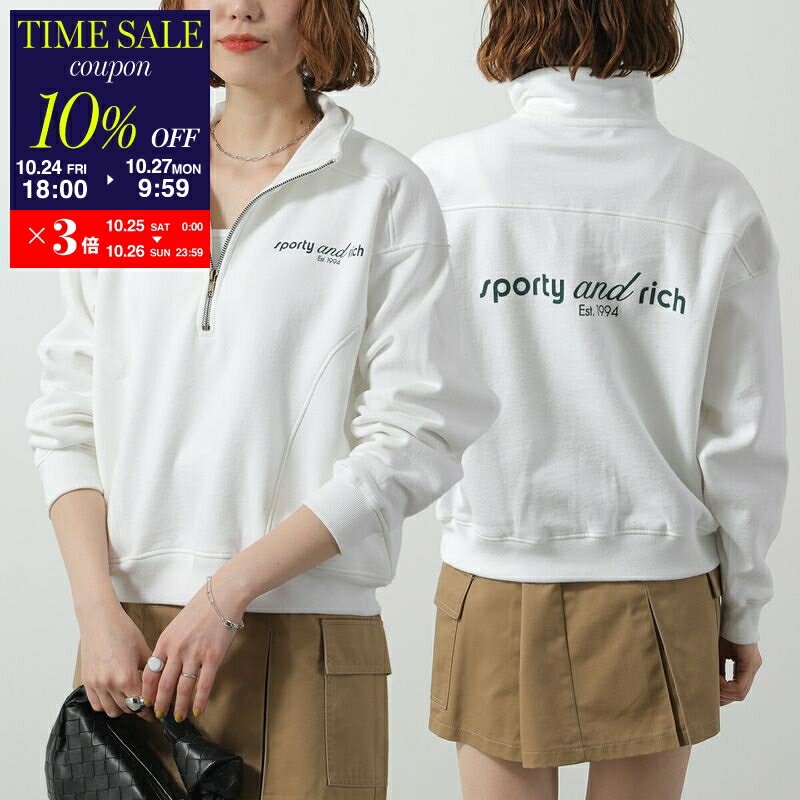 【10/27-9:59迄10%OFFクーポン対象】SPORTY&RICH スポーティアンドリッチ トレーナー QZAW239 レディース スウェット ハーフジップ ハイネック 長袖 裏起毛 ロゴ WHITE【cp_ten】