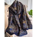 アクセサリー レディース スカーフ ペイズリー柄 スカーフ ダークブルー ビンテージサテン ショール 絹風 カジュアル カット 防