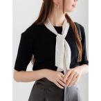 ニット セーター スカーフカラーハーフスリーブニット レディース