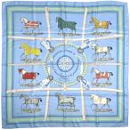エルメス HERMES カレ 90 Couvertures et Tenues de Jour 馬着 editees par 競走馬柄 スカーフ シルク ブルー マルチカラー レディース 中古