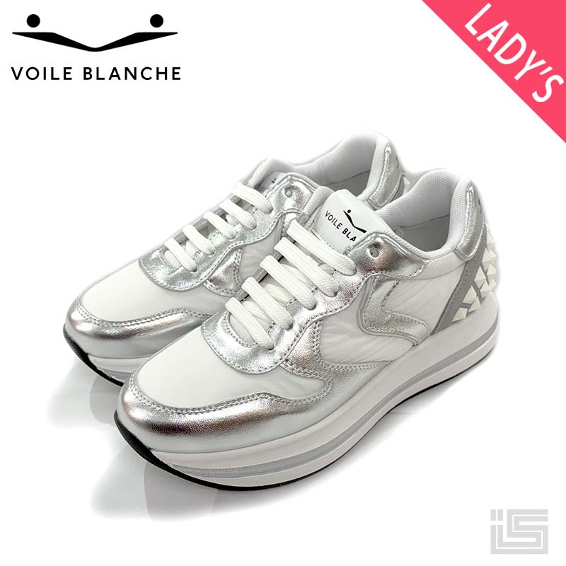 【New Arrivals】VOILE BLANCHE ボイルブランシェ 2019126-02-1q23 MERRY S メリースタッズ METALLIC GOAT SKIN/NYLON/SILVER-WHITE シルバーホワイト レディーススニーカー イタリアブランド 【25ss】 【正規取扱品】