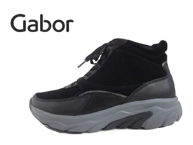 Gabor(ガボール)76.836.37 BLACK/ブラック rolling soft ハイカットスニーカー サイドファスナー付き ドイツ老舗ブランド レディーススニーカー インポートスニーカー