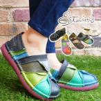 エスタシオン 靴 レディース スリッポン ローカット カラフル オブリークトゥ コンフォートシューズ TG043 本革 ぐるぐる 渦巻き 痛くない 履きやすい 疲れない