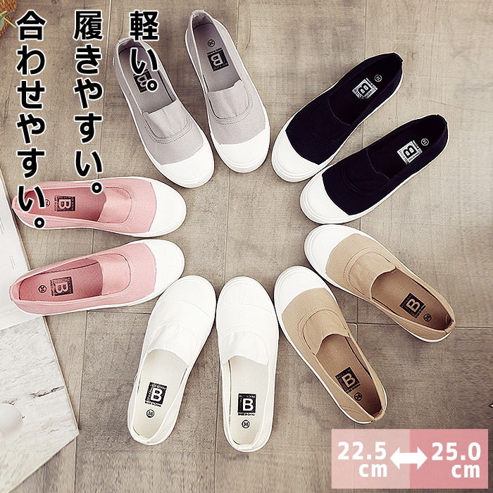 スリッポン ぺたんこシューズ レディース フラットシューズ キャンバス カジュアル 紐なし 軽量 シンプル 痛くない 履きやすい 疲れない 無地 23.0cm-25.0cm