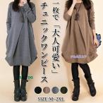 チュニック ワンピース 春秋 冬 膝丈 レディース チュニックワンピース クルーネック 森ガール ロングワンピース ひざ下丈ワンピース ひざ丈 長そで ロング 無地