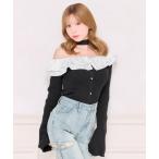 ニット セーター チョーカー付きフリルワンショルニット レディース