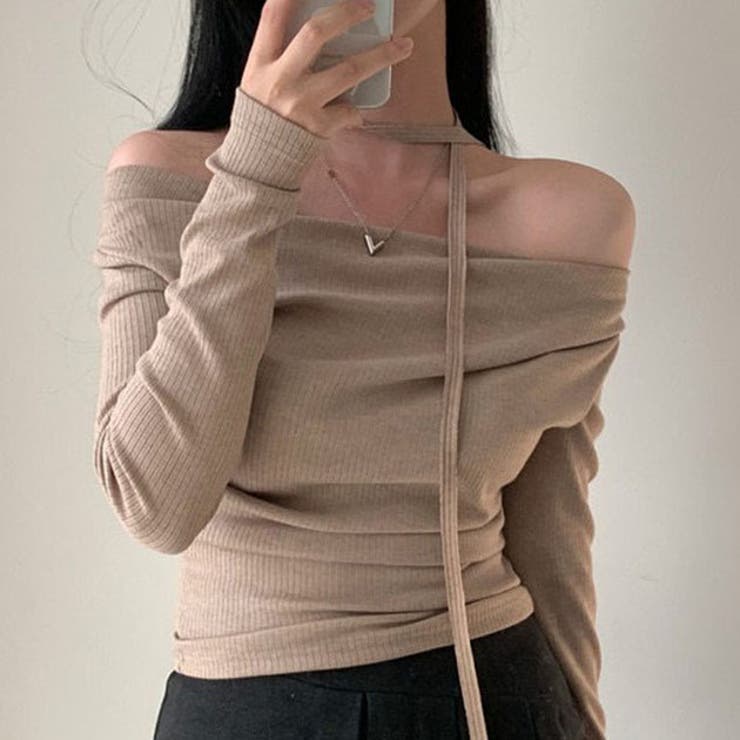 【10%OFFクーポン!12/11(木)1:59まで】レースレディース チョーカー付き オフショルダー ドレープ ニット プルオーバー 女性 レディース トップス セーター 秋 冬 ソフト リブ テレコ ショート丈 ジャスト丈 コンパクト ソリッドカラー