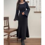 ワンピース チョーカー付きウエストタックマーメイドワンピース