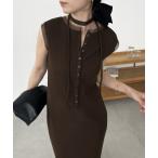 ワンピース チョーカーギャザーフィットニットワンピース