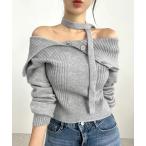 ニット セーター 2点セット アシメオフショルニット&チョーカー レディース