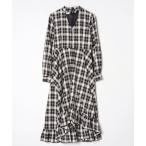 ワンピース チョーカー付き クルーネック パフスリーブ ギャザー ロング ワンピース
